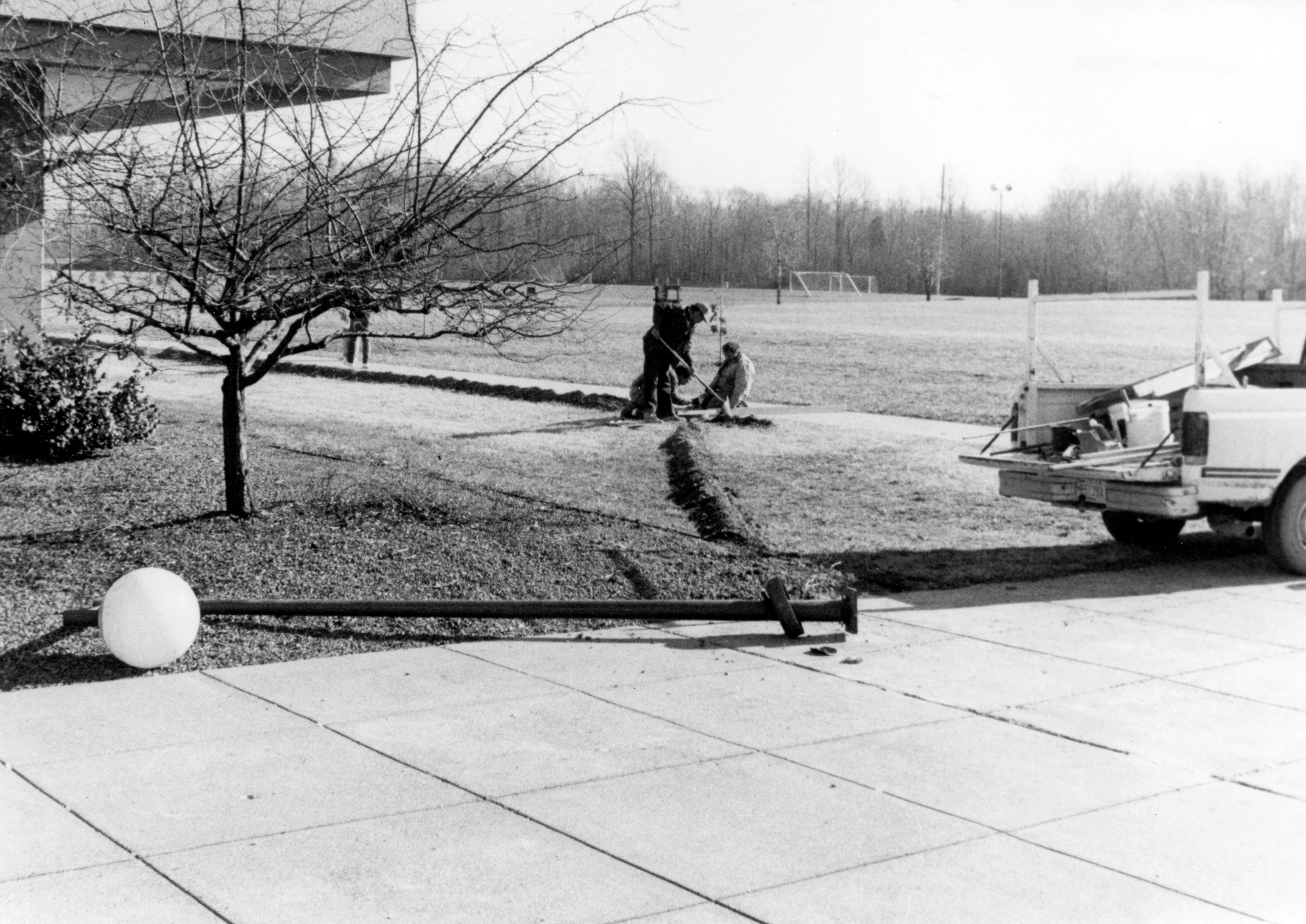 Campus grounds, working on light pole