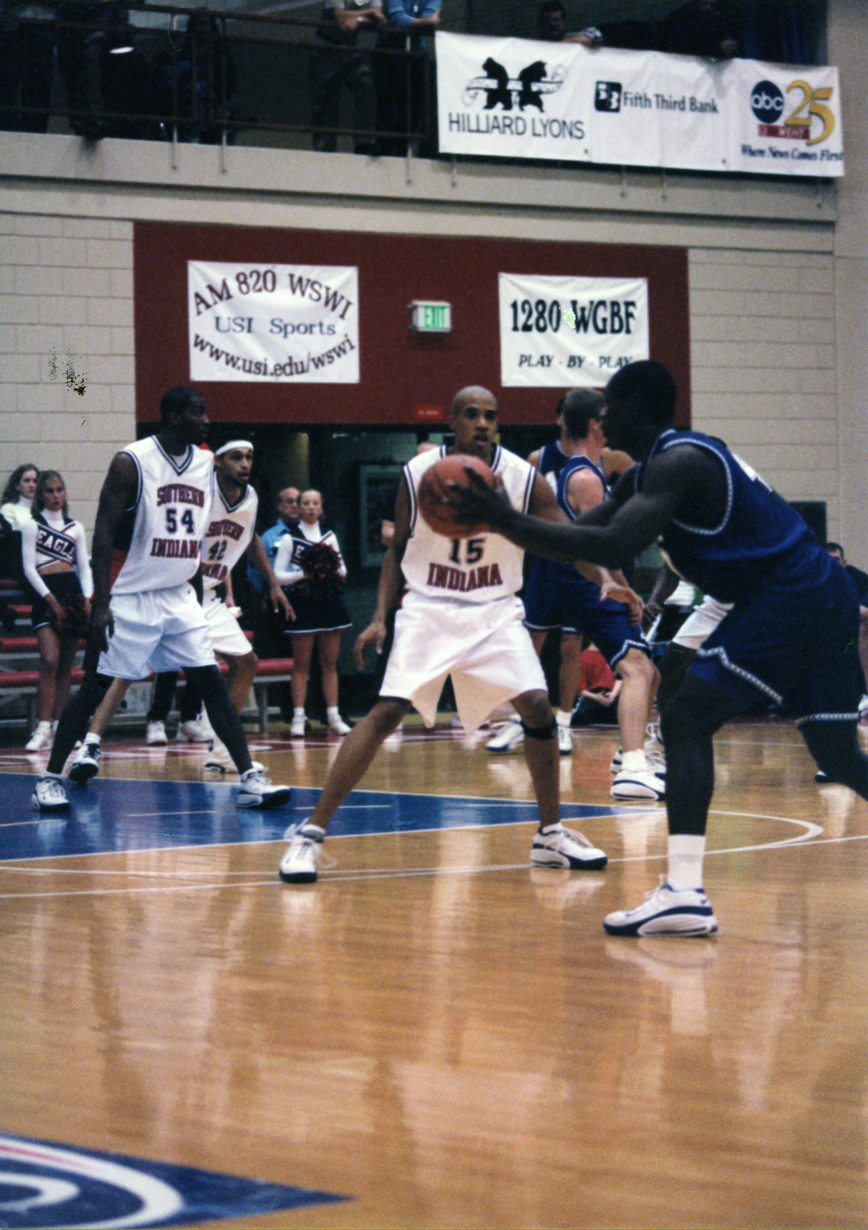 Men's basketball players Kimon Brown, Marlowe Currie, and Diond're Givens. USI vs. Abilene Christian University