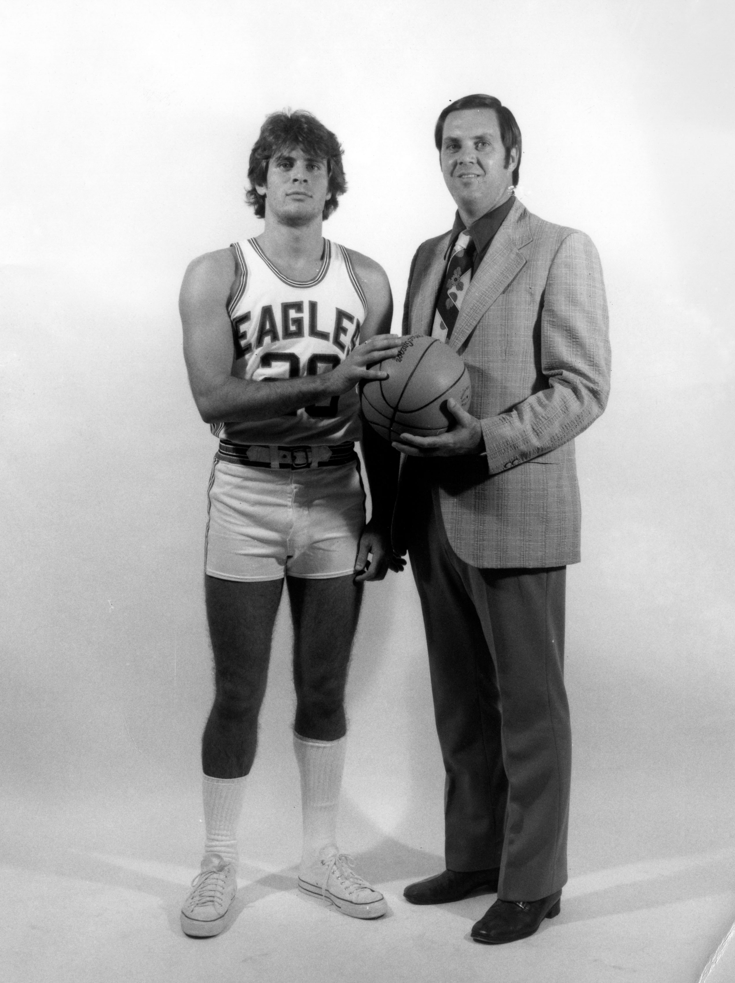 Men's basketball player Paul Werner and coach Wayne Boultinghouse