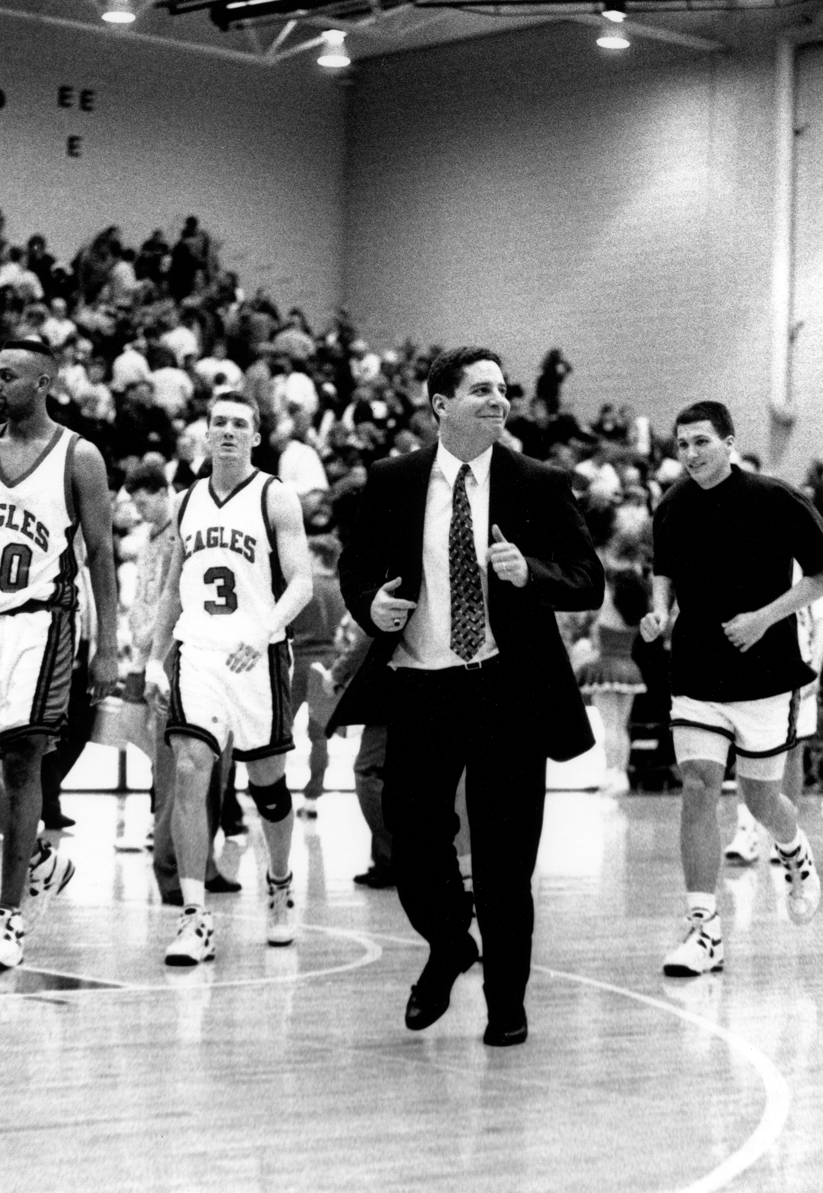 Men's basketball players Cortez Collins, Brian Huebner, and coach Bruce Pearl