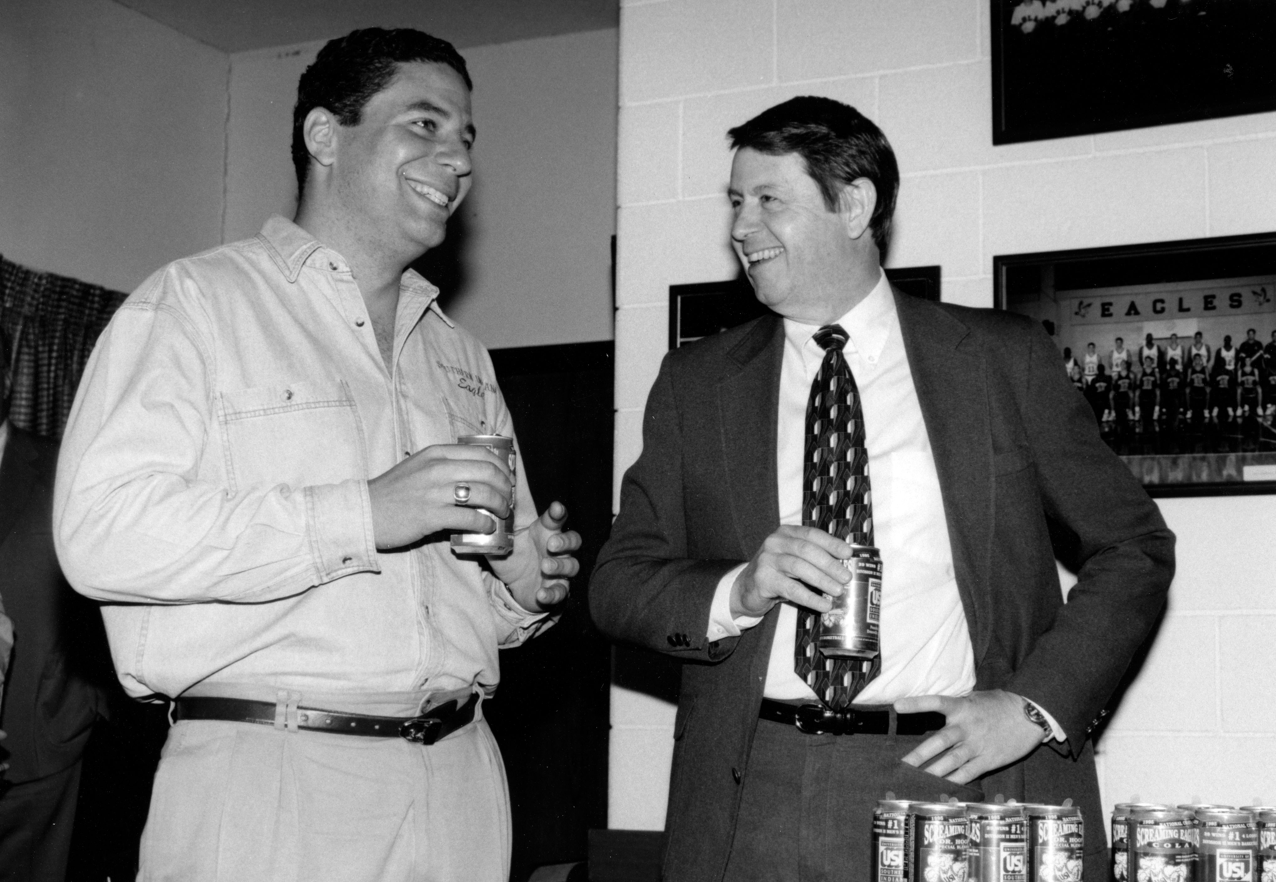 Men's basketball coach Bruce Pearl and USI president Dr. H. Ray Hoops