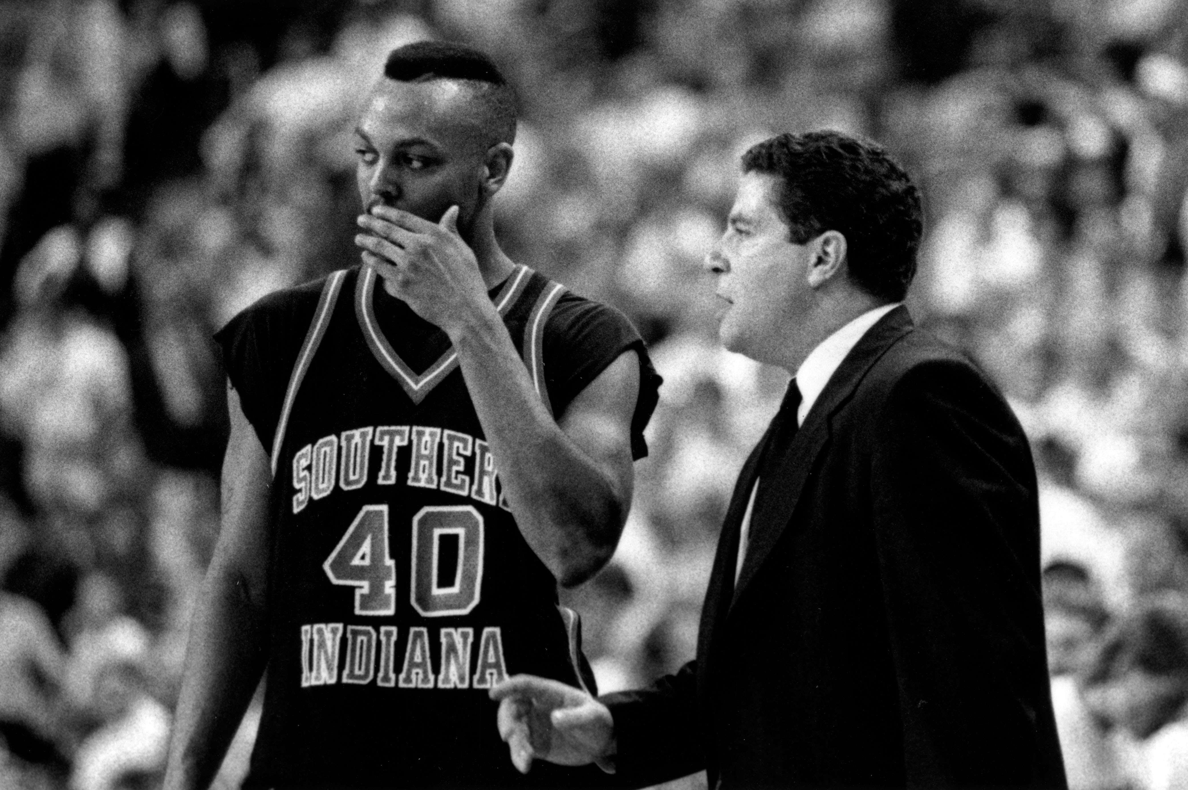 Men's basketball coach Bruce Pearl and player Cortez Barnes