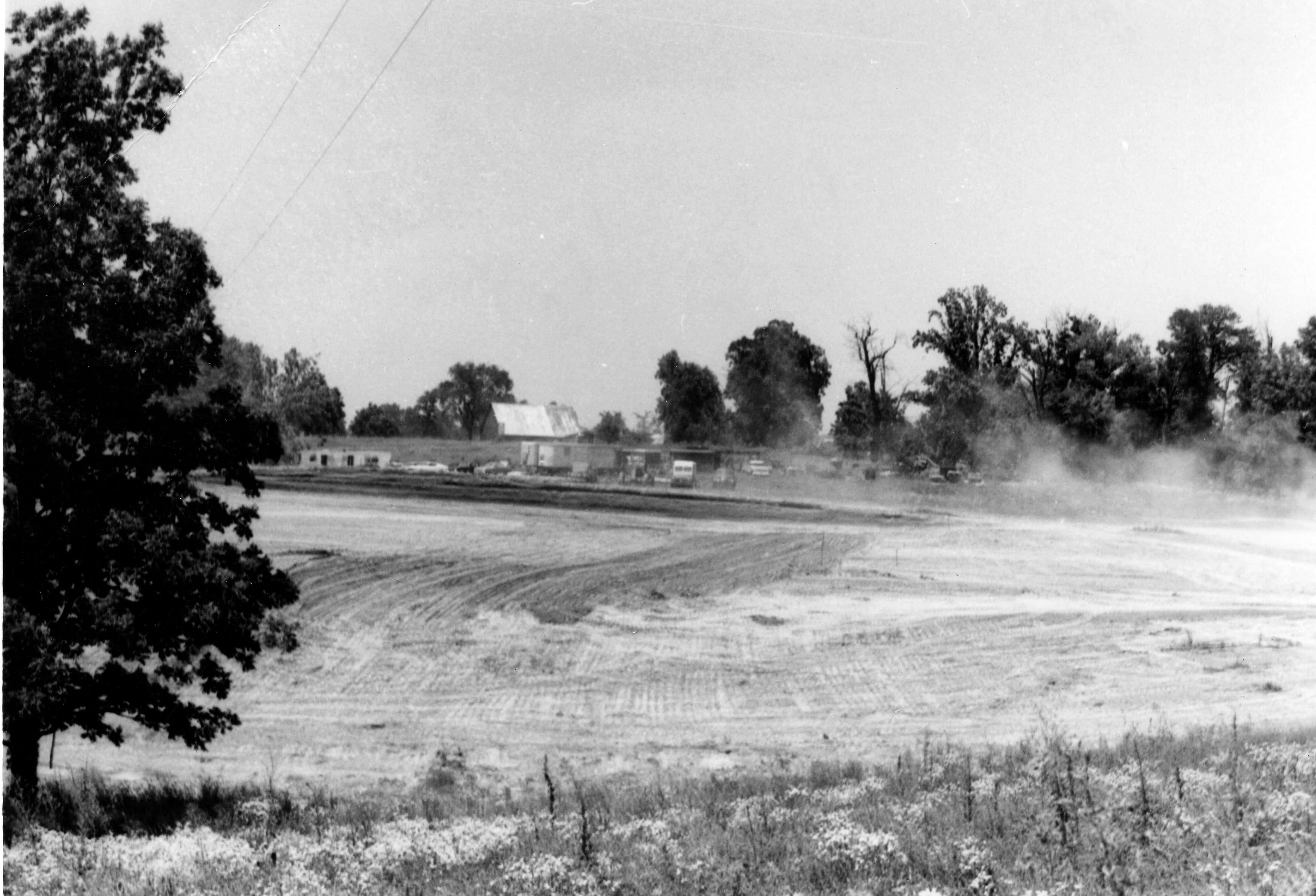 Classroom building complex construction. This is the ground clearing for the first building on campus; administration, academic divisions, and forum rooms. In 1994 this building was named Byron Wright Administration Building.