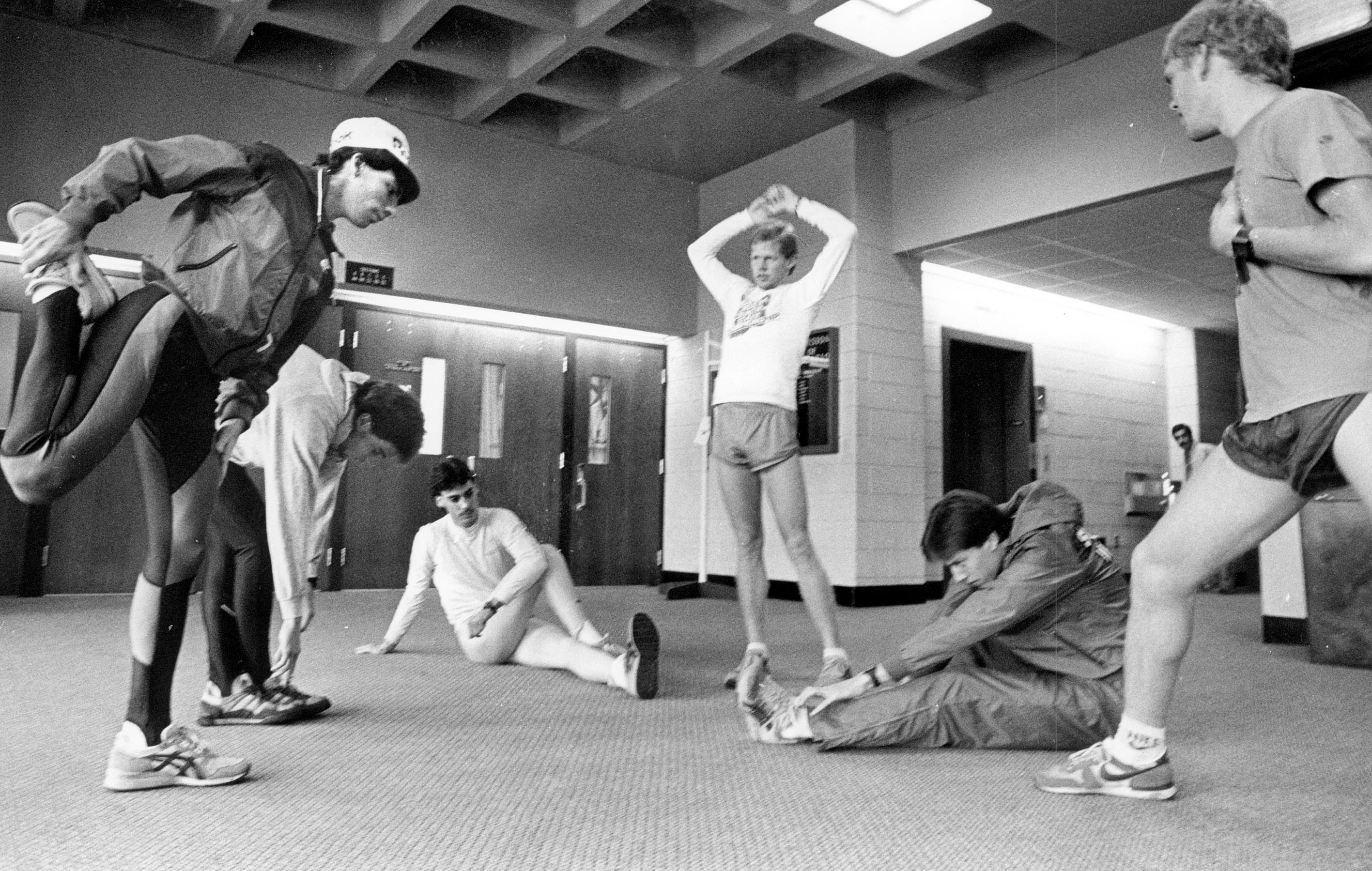 Brad Apple and Steve Harrell and four unidentified student athletes