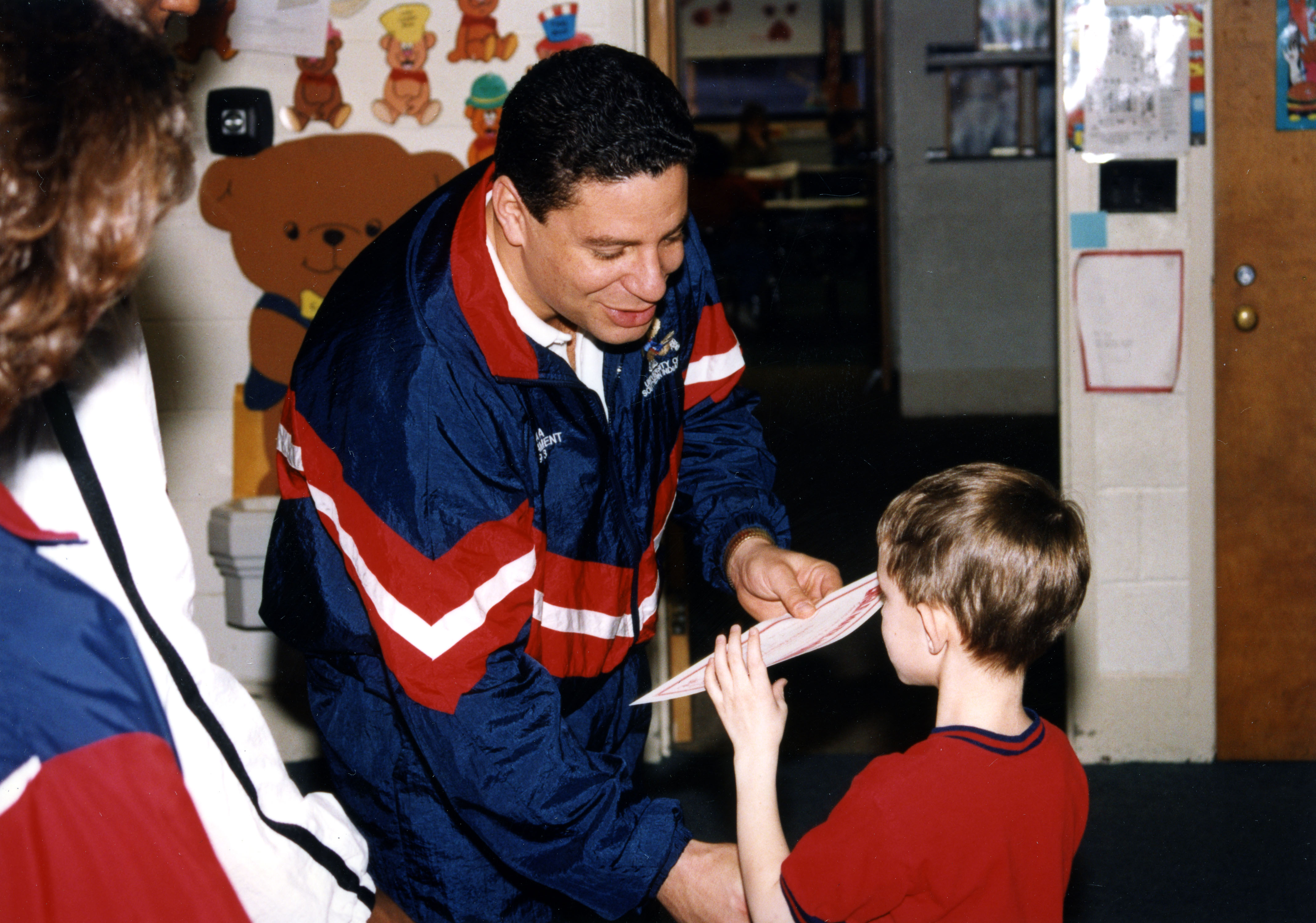 Men's basketball coach Bruce Pearl at elementary school for Eagle Math Mania