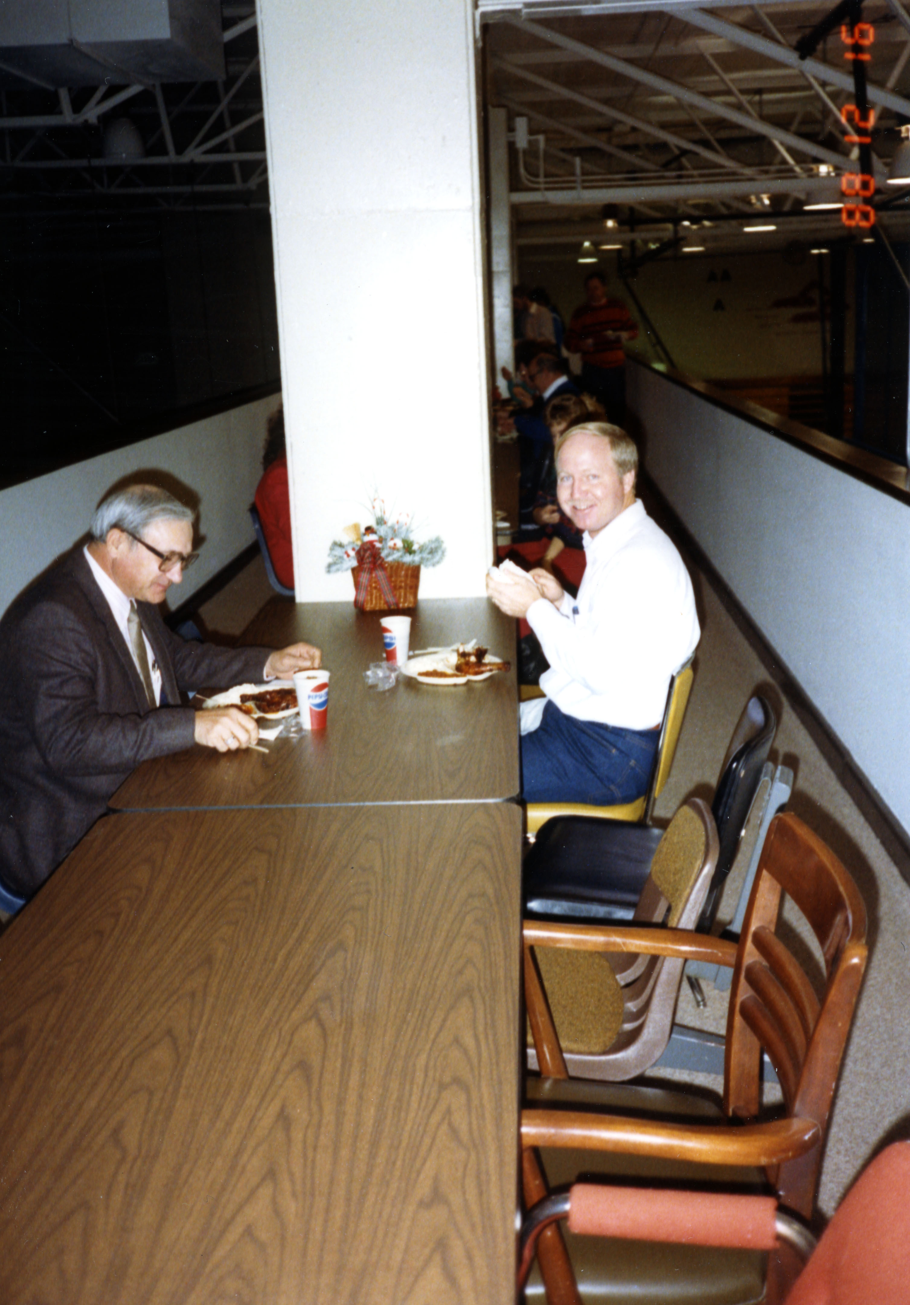 Faculty representative Dr. Charles Bertram (left) at an athletics reception in Physical Activities Center (PAC)