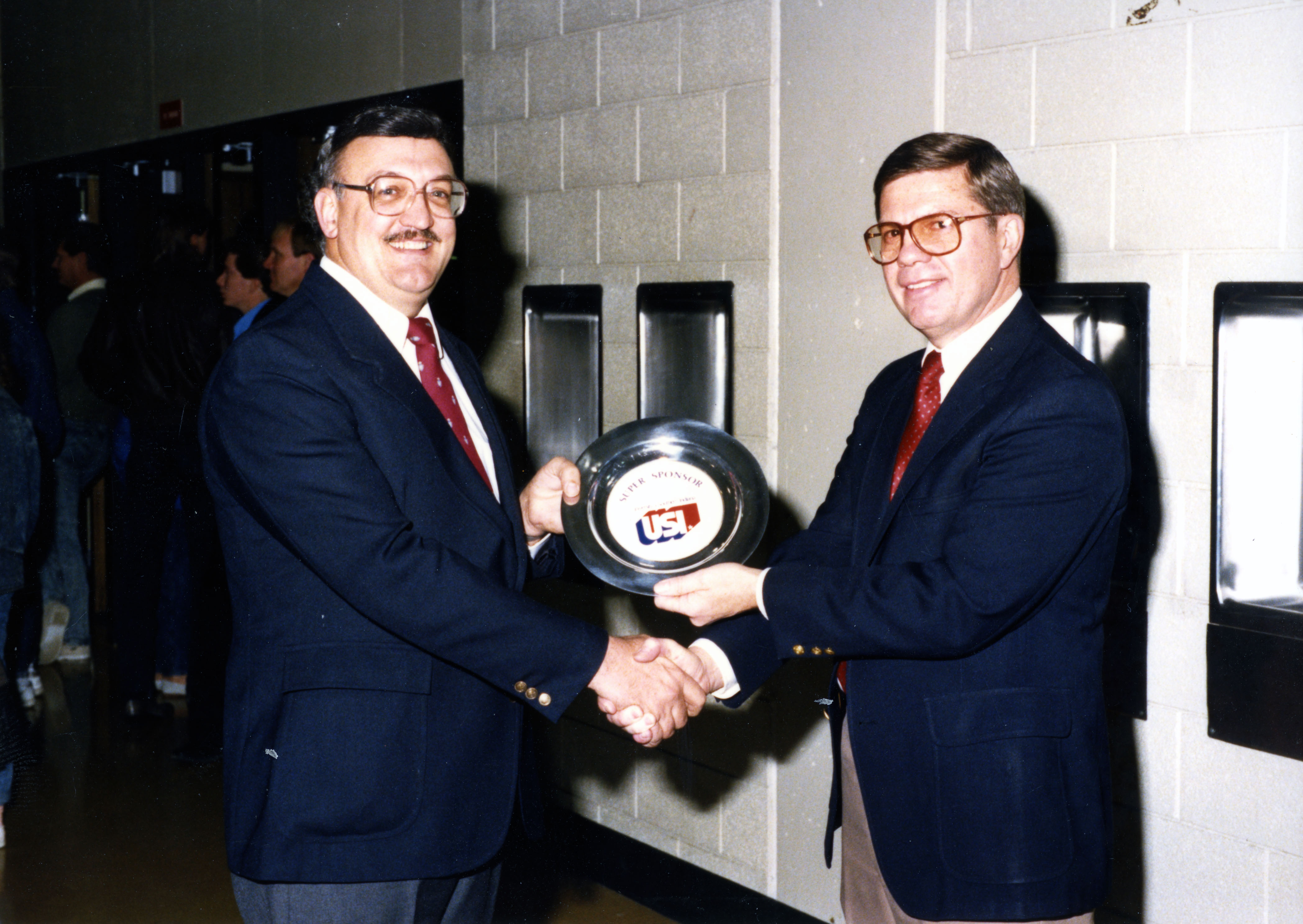 Dr. Larry Arp giving unidentified individual the Super Sponser Award