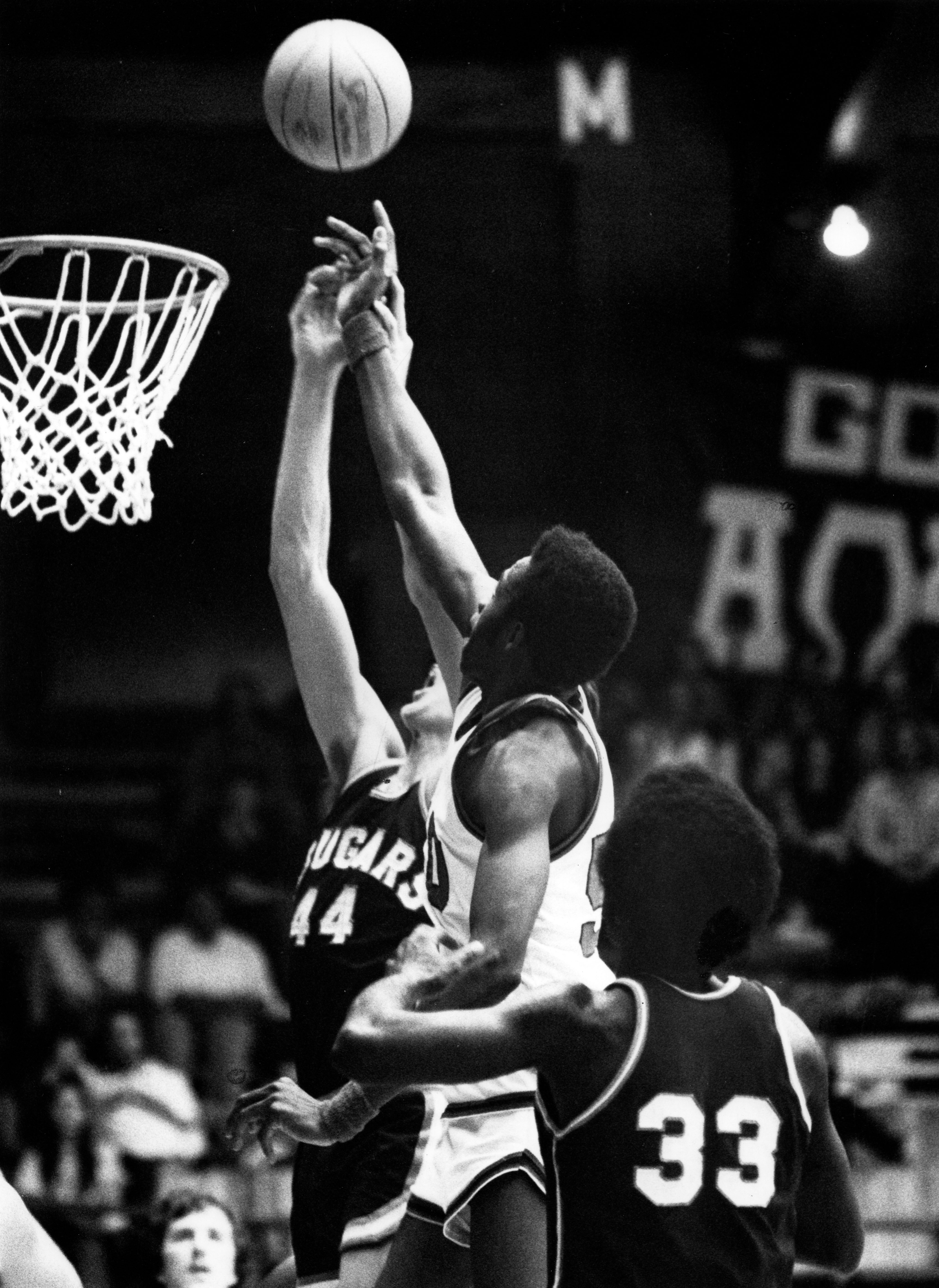Men's basketball player Lynnwood Cowan, ISUE vs. Southern Illinois University Edwardsville