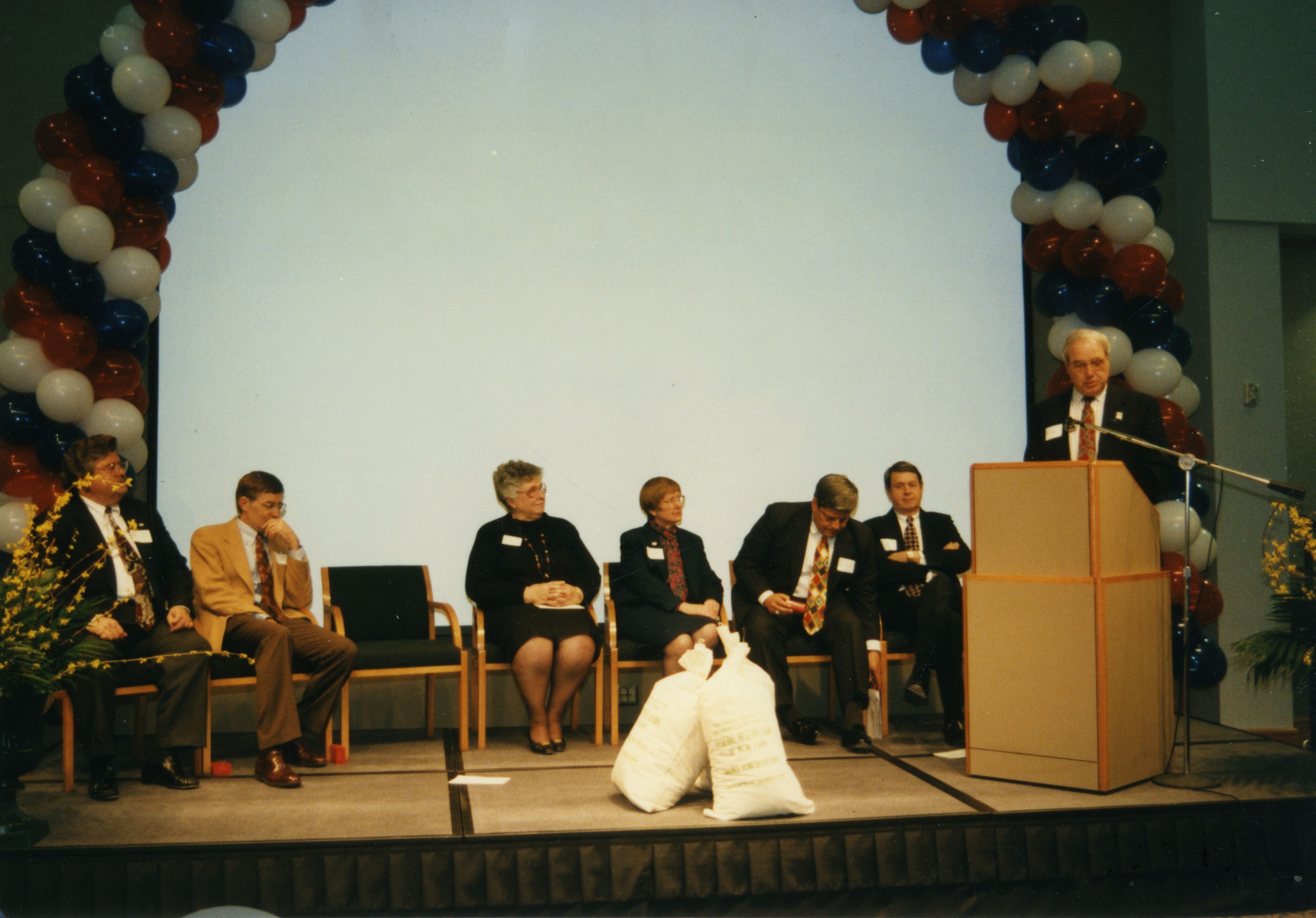 John Deem, Chuck Price, Marlene Shaw, H. Ray Hoops, Betty Rice, and Bruce Baker