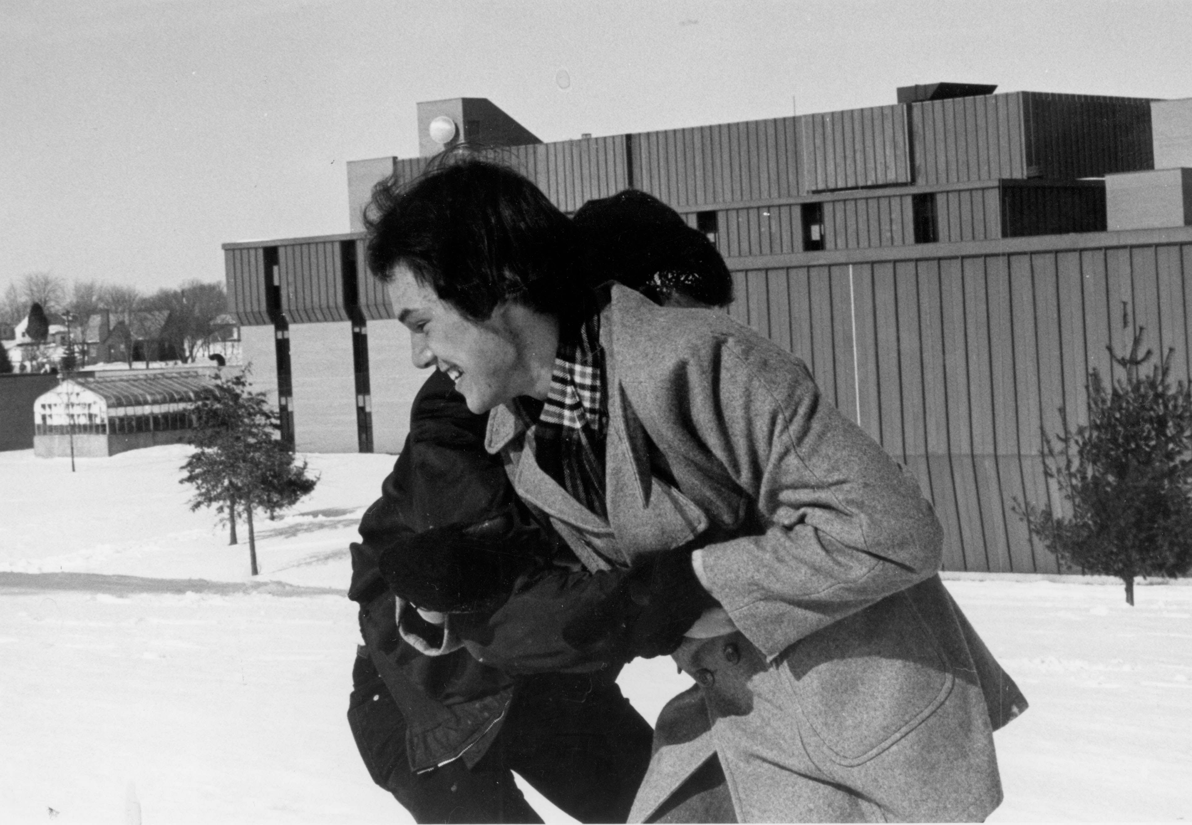 students playing in the snow