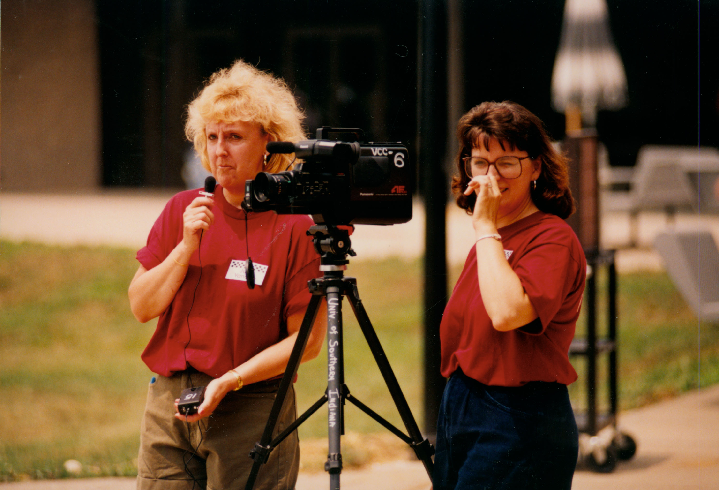 Julia Yancy (payroll) and Debbie Clark (library) filming