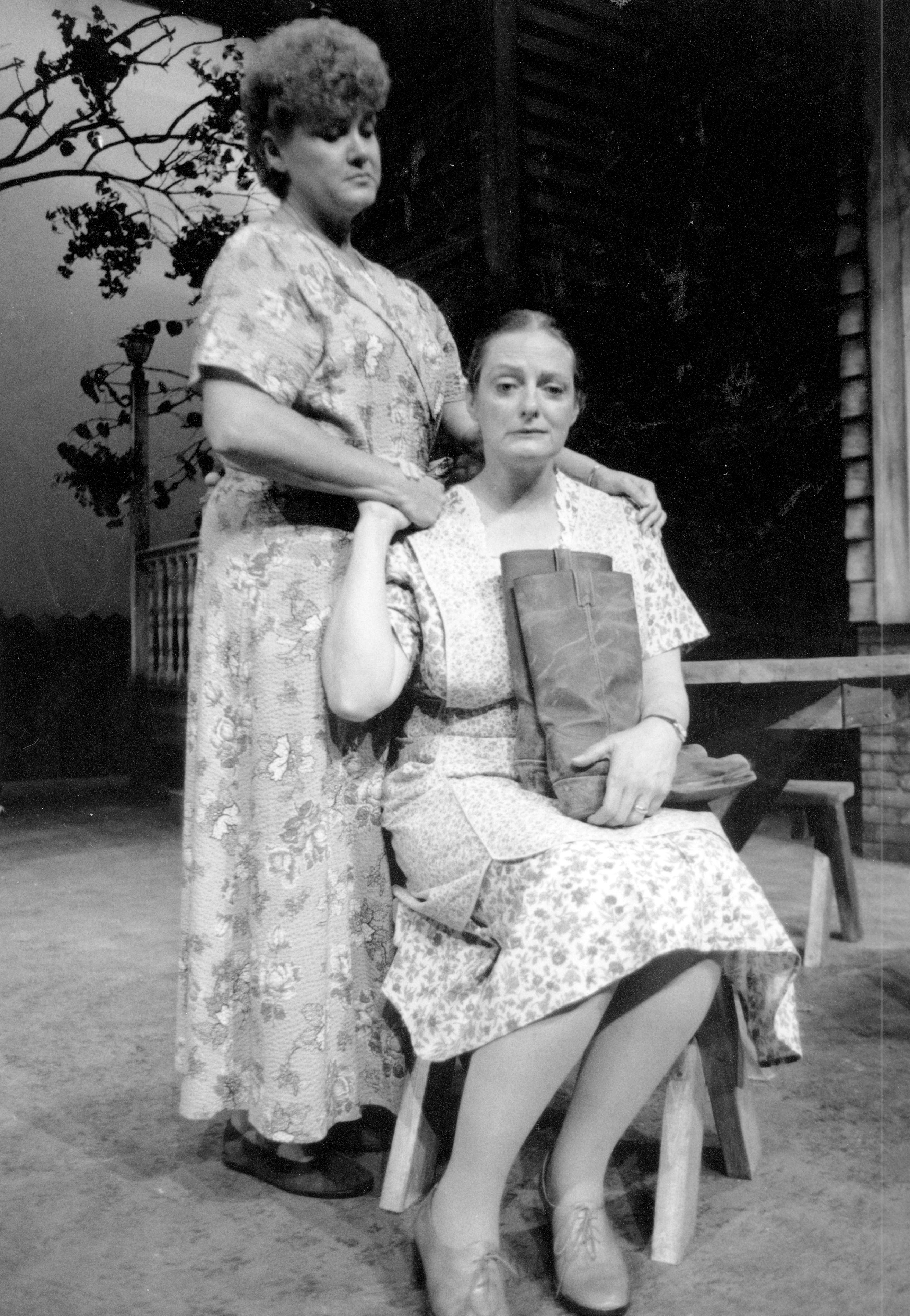 Theater, Scene from play: two women grieving. New Harmony, Indiana