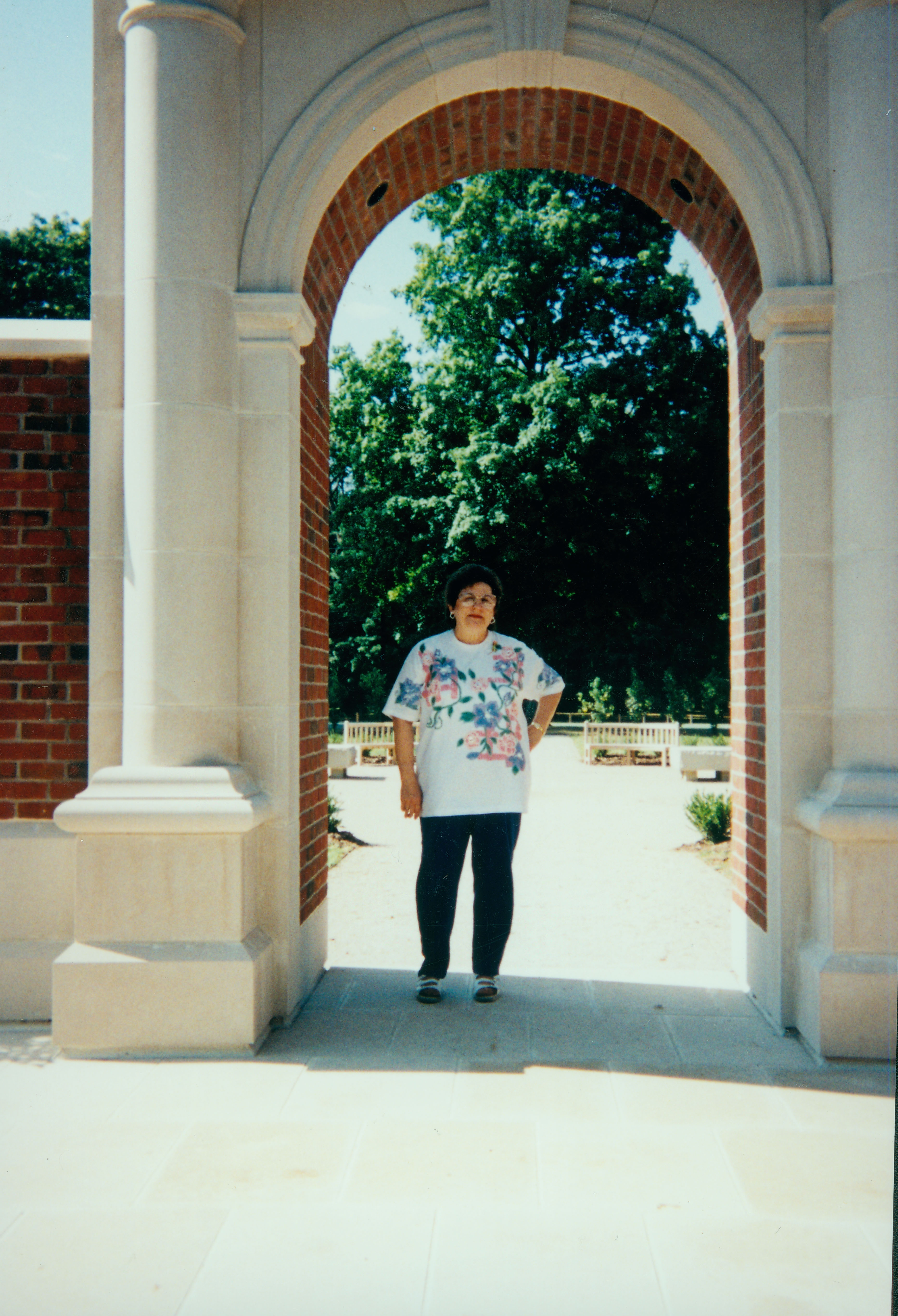 USI employee under arch. New Harmony, Indiana