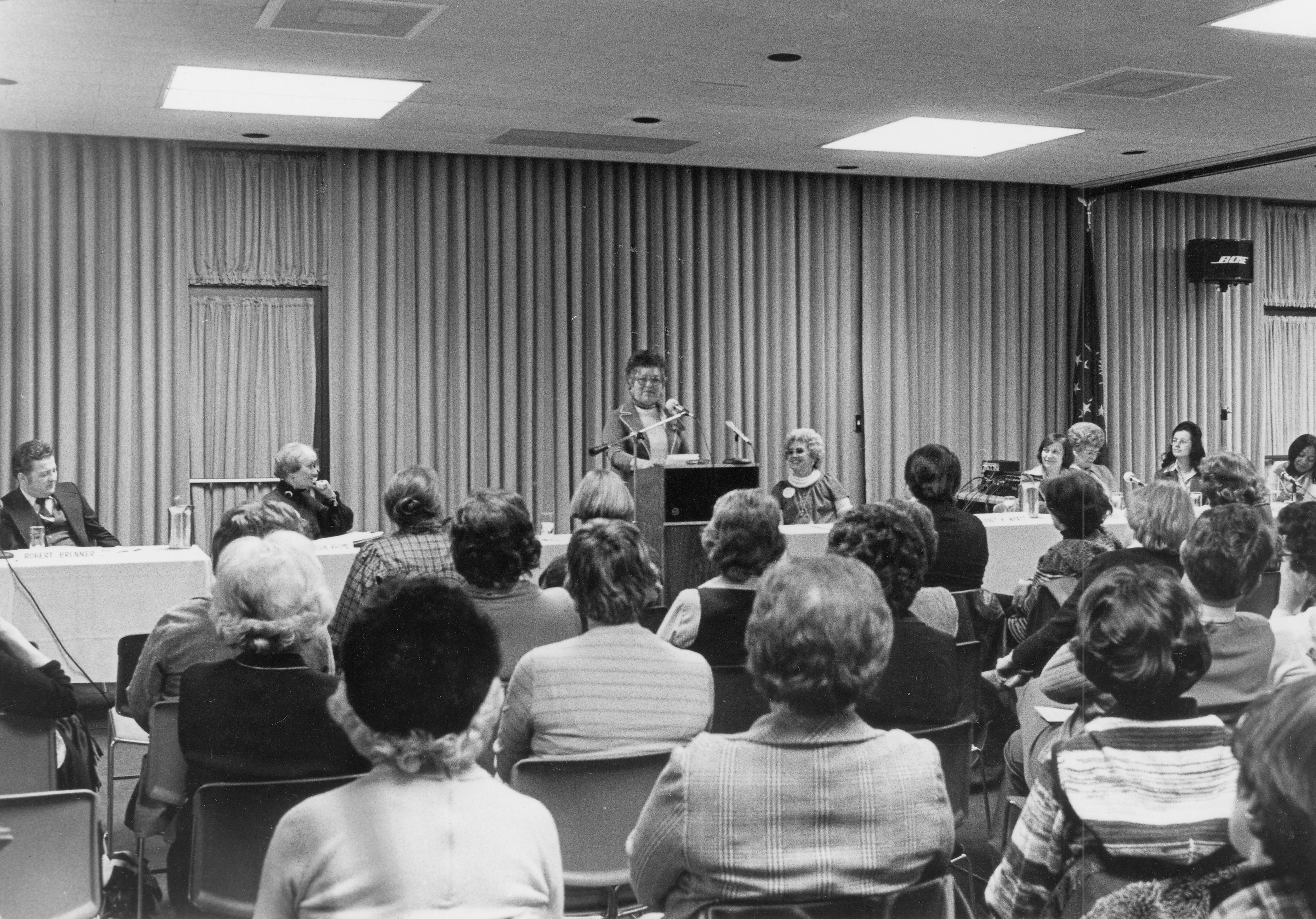 Woman speaking to large audience