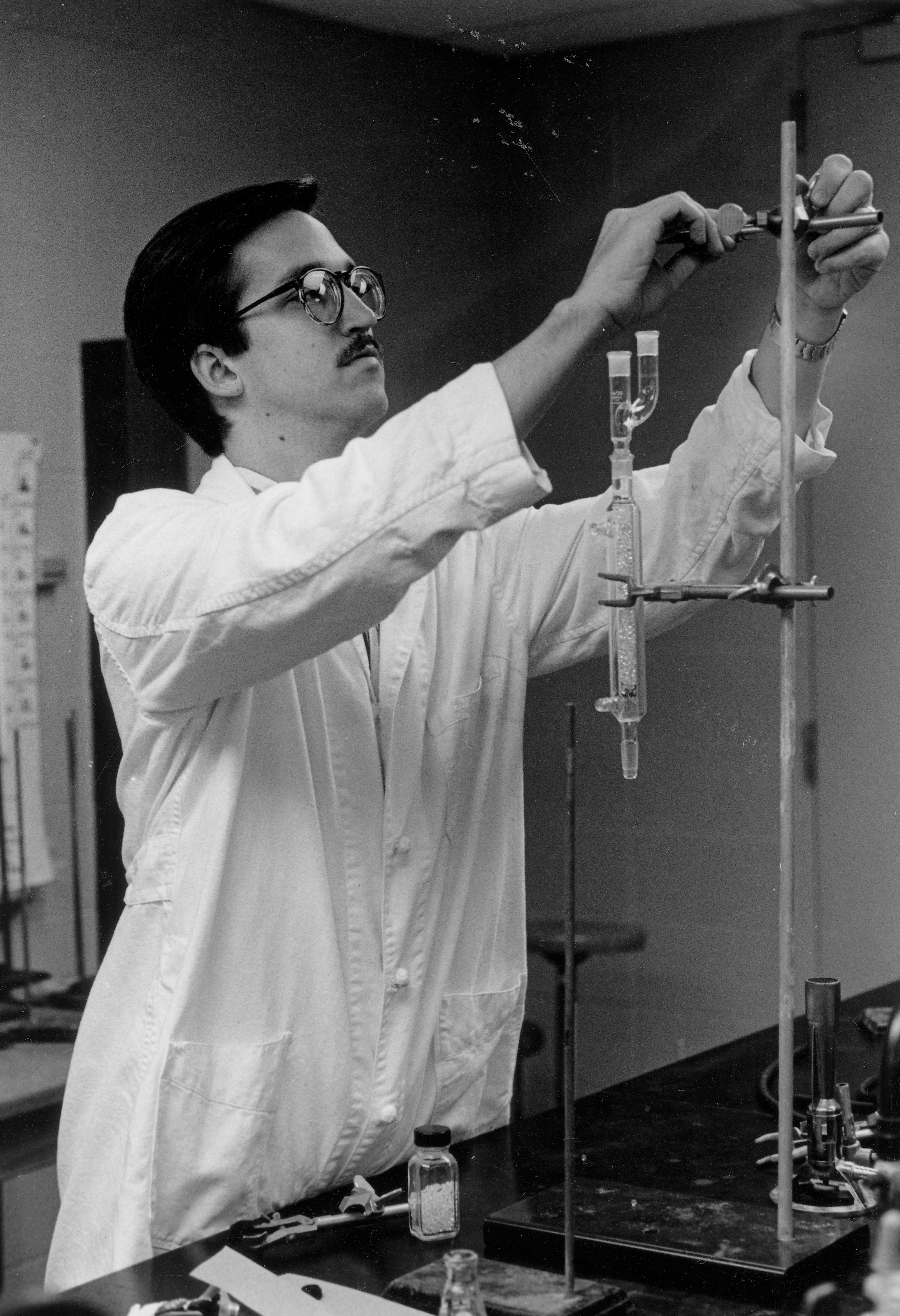 Man setting up in chemistry lab