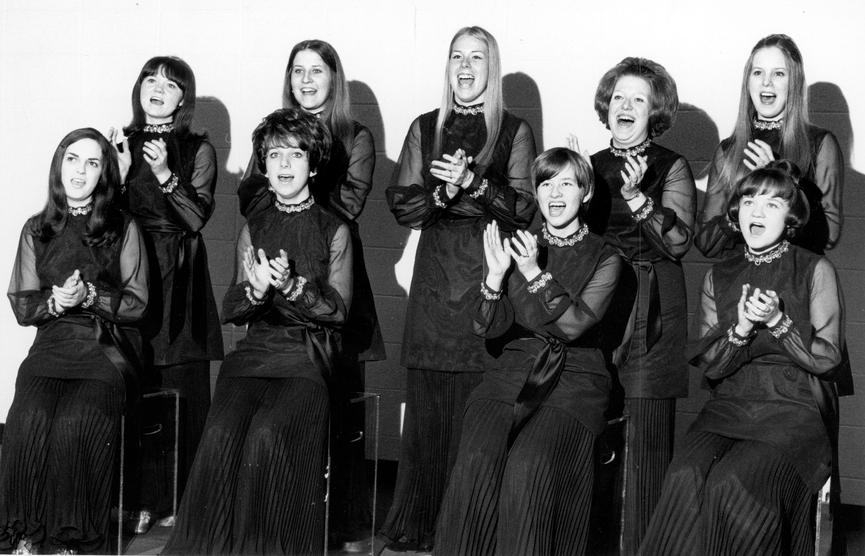 Mid-American Singers: Sharon Osgatharp, Connie Dartt, Judy Weyer, Cheryl Tenbarge, Becky Becker, Becky King, Rita Johnson, Tonya Eades Melton, and Carol Osgatharp