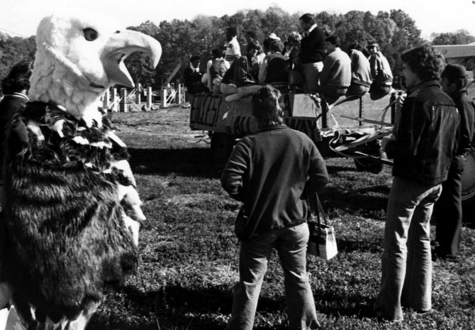 Pep rally with Archibald the Eagle and Wayne Boultinghouse