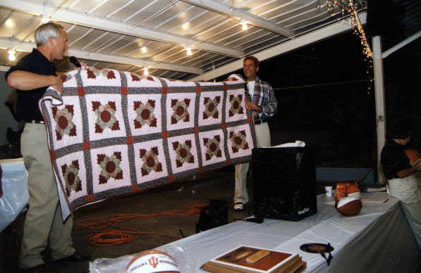 Varsity Club Steak Fry and Auction, Bruce Pearl with quilt being auctioned