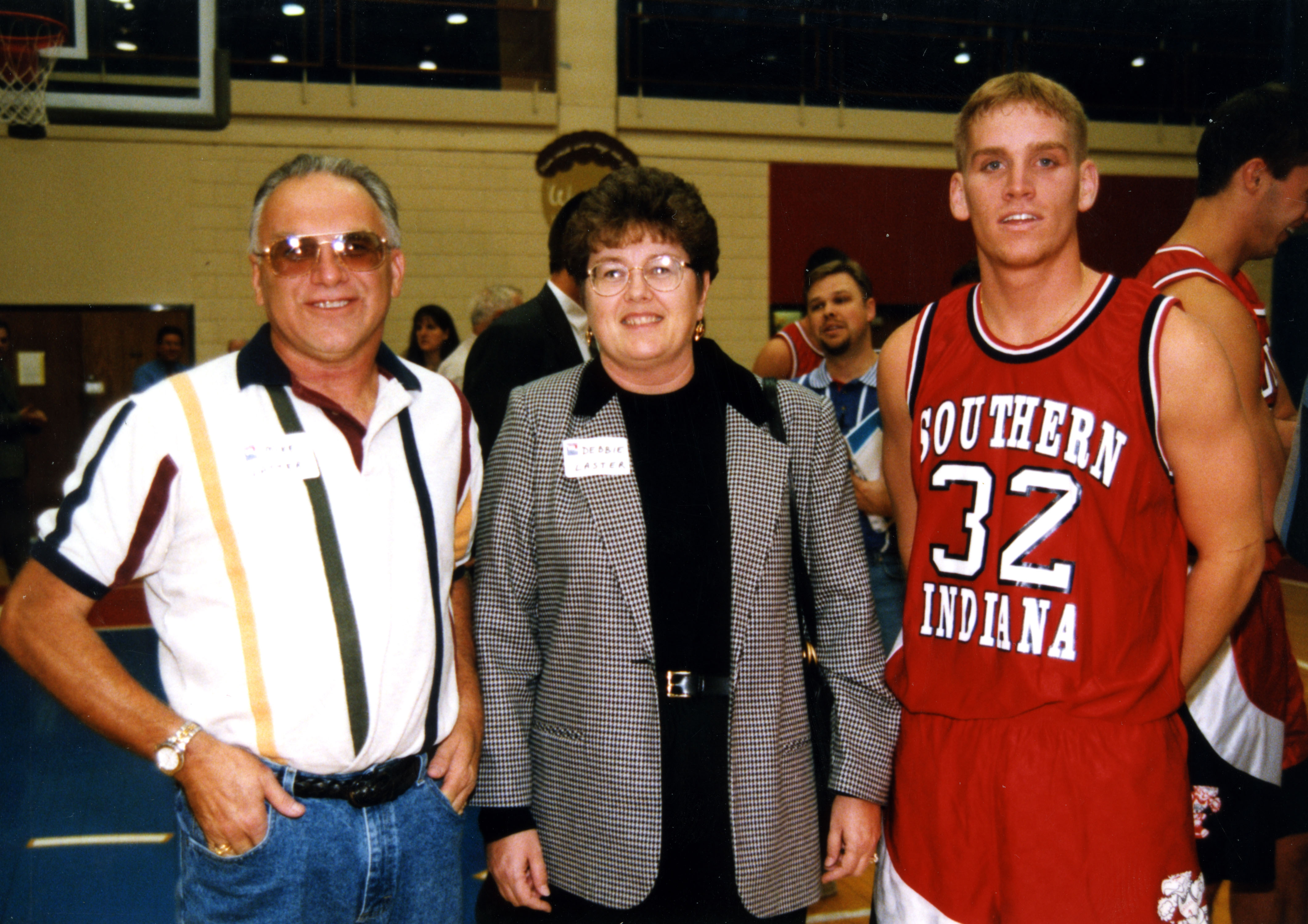 Varsity Club event: Mike Laster, Debbie Laster, and Unidentified Men's Basketball Player