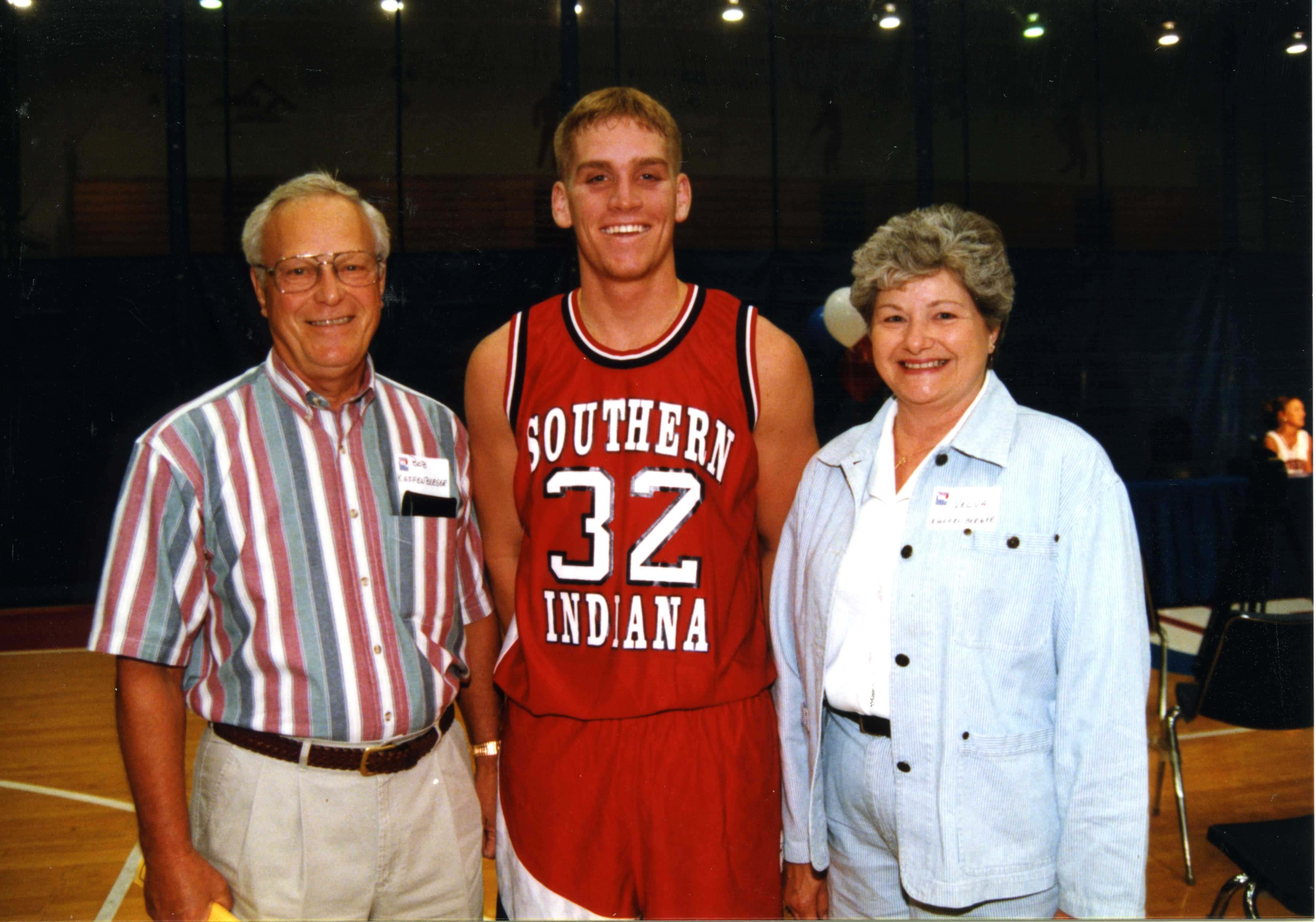 Varsity Club event: Velva Kaffenberger, Bob Kaffenberger, and Unidentified Men's Basketball Player