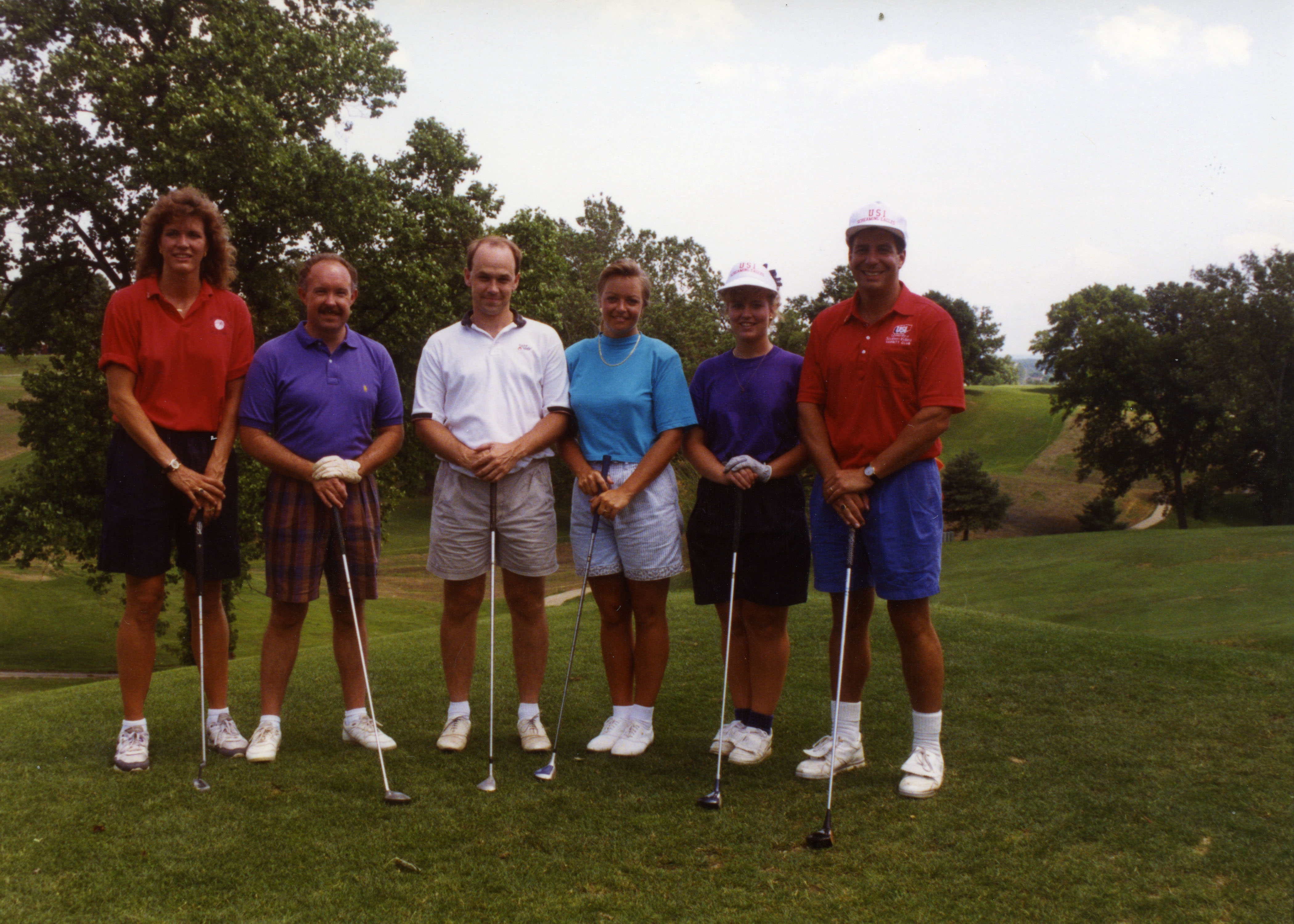Varsity Club Golf Scramble: Chance Dugan, Mike Siebeking, David Sartore, Sharon Thomas, Stephanie Sargent, and Bruce Pearl