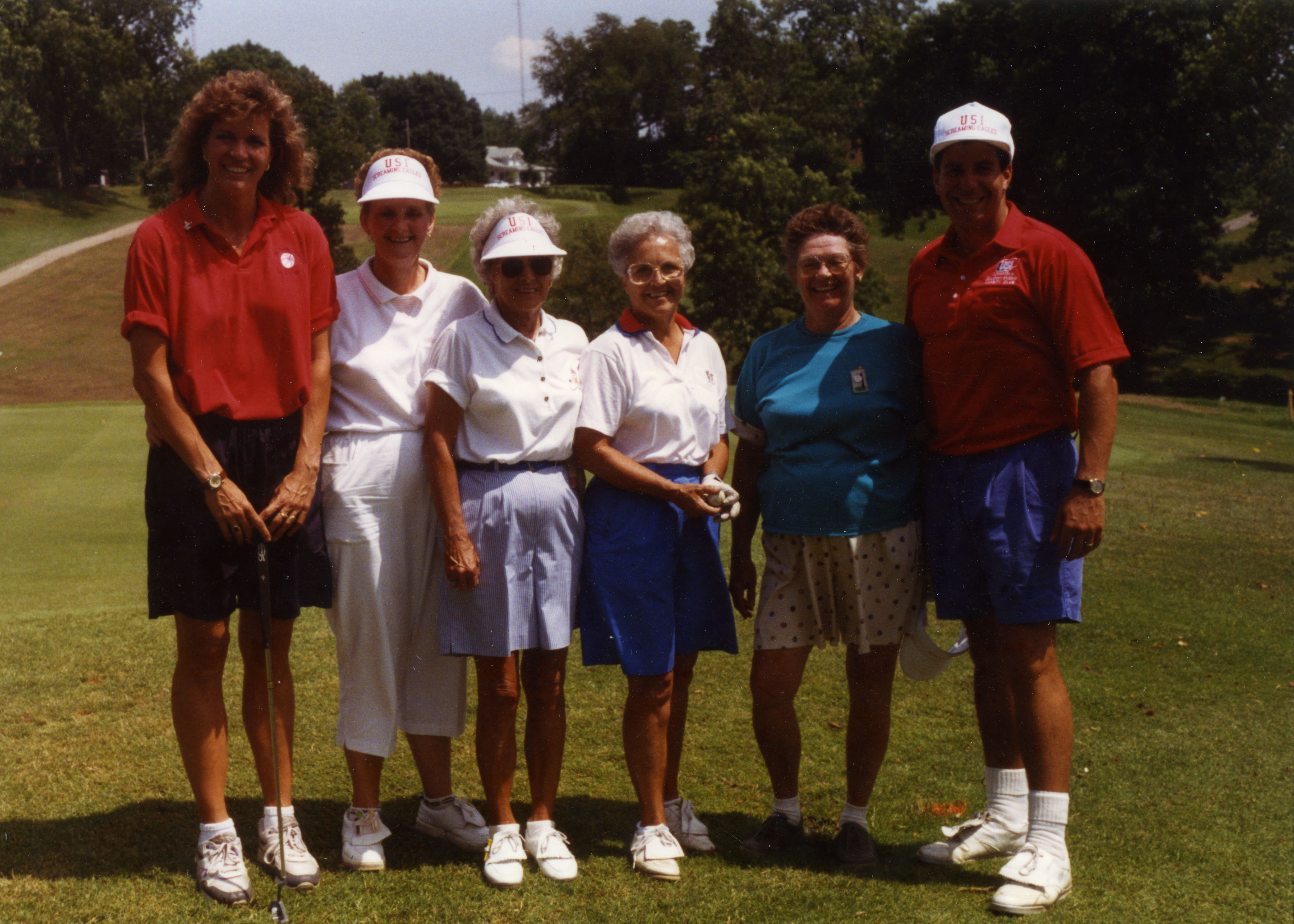 Varsity Club Golf Scramble: Chance Dugan, Betty Grimm, Doty Walker, Wanda Maye, Mary Ann Redman, Bruce Pearl